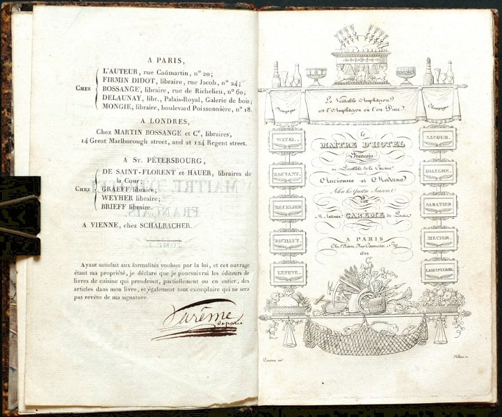 En L’art de la cuisine française, un trabajo en cinco tomos que Carême escribió poco antes de morir, y en los que resumía todo su conocimiento y habilidad, filosofía y gustos, certificó que era uno de los padres de la llamada haute cuisine, la alta cocina francesa que se alzó como la reina de las cocinas europeas y conocidas en el siglo XVIII y XIX, un altar en el que aún destacan los vecinos galos.