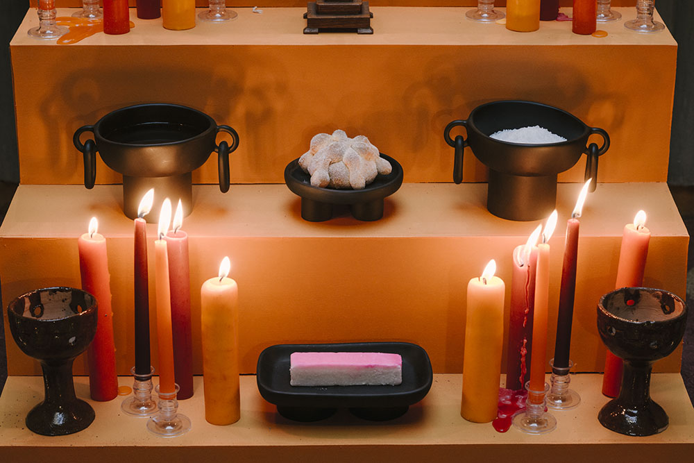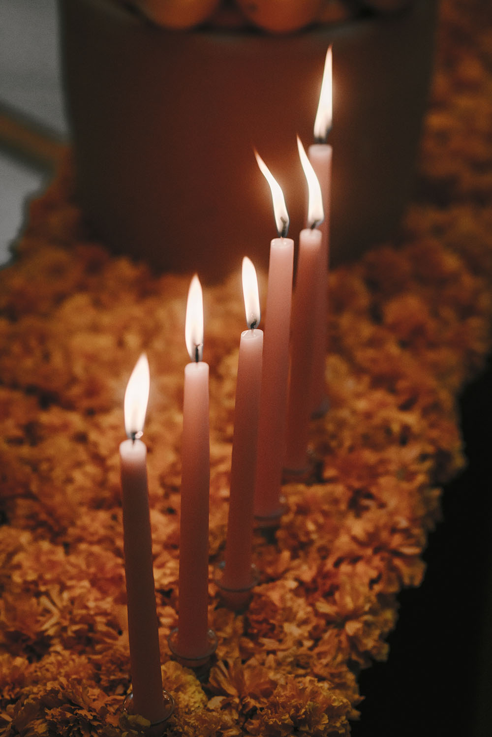 En el corazón del patio central, las velas encendidas marcarán el inicio de un recorrido sensorial, el olor de copal y flor de cempasúchil serán el aroma del espacio, mientras la luz tenue y los tonos cálidos crean una atmósfera que invita a la contemplación.